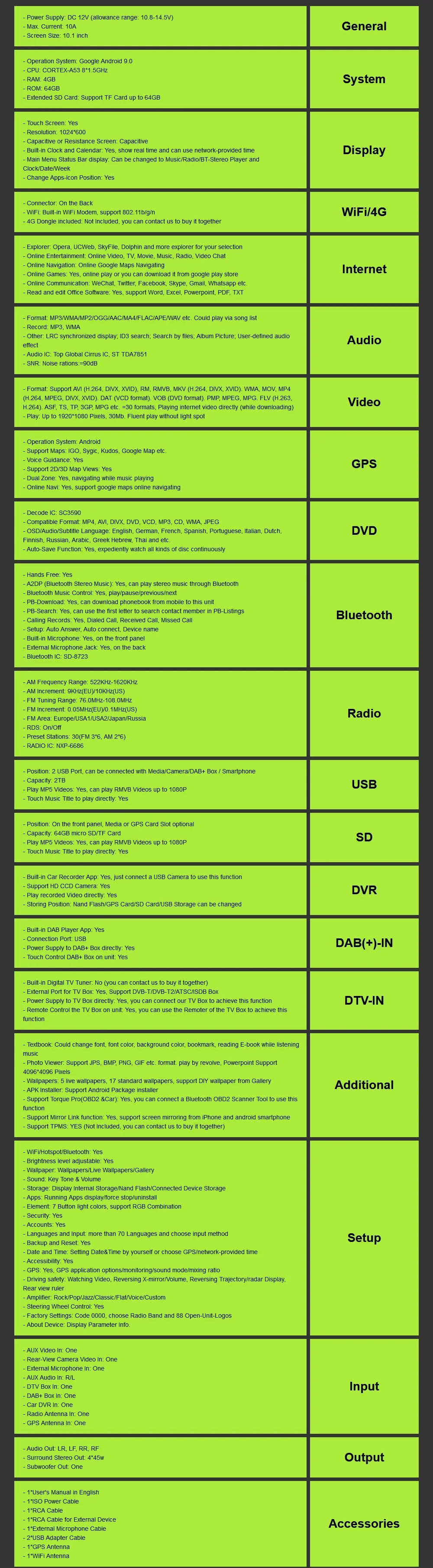The link as follows is for you to buy the accessories & rear view camera with the stereo together , thanks for your supports https://www.aliexpress.com/store/group/Car-Camera-Accessory/2339127_509806797.html?spm=2114.12010612.0.0.307438f6FMNoEO the stereo comes with the accessories as the picture of the accessories shows, if you needs other wire cable or accessories for installing ,then you needs to buy separately. If we send it from China via DHL ,we usually declare 80usd and mark "car dvd player" on the package to avoid and reduce customs taxes.If there is customs taxes,buyers need to pay for it.If you have special request,please contact us when you make order. Important Note: please check your original car radio size and appearancebefore make a orderbid to avoid mistake.
